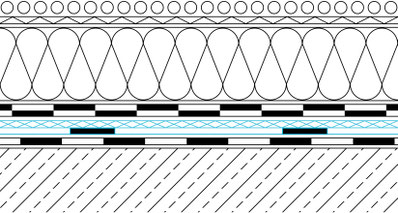 Alle Abdichtungslagen wurden vollflächig miteinander verklebt. Die elektrisch leitfähig eingestellte Kontaktlage wurde über den Elektroden angeordnet und im Gieß- und Einrollverfahren in